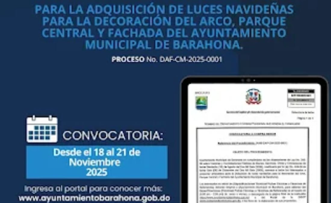 De acuerdo con la institución, la convocatoria se realiza en cumplimiento de lo dispuesto por la Ley 340-06 sobre Compras y Contrataciones Públicas, con la finalidad de realzar los espacios principales del municipio y promover el ambiente festivo propio de la época.