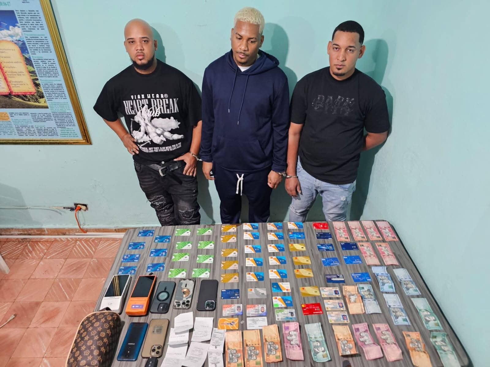 Hato Mayor del Rey. Miembros de la División de Investigación de la Policía Nacional y de la Dirección de Inteligencia (DINTEL) arrestaron en flagrante delito a tres hombres señalados por su presunta vinculación a la modalidad de fraude conocida como “cambiazo” de tarjetas bancarias.