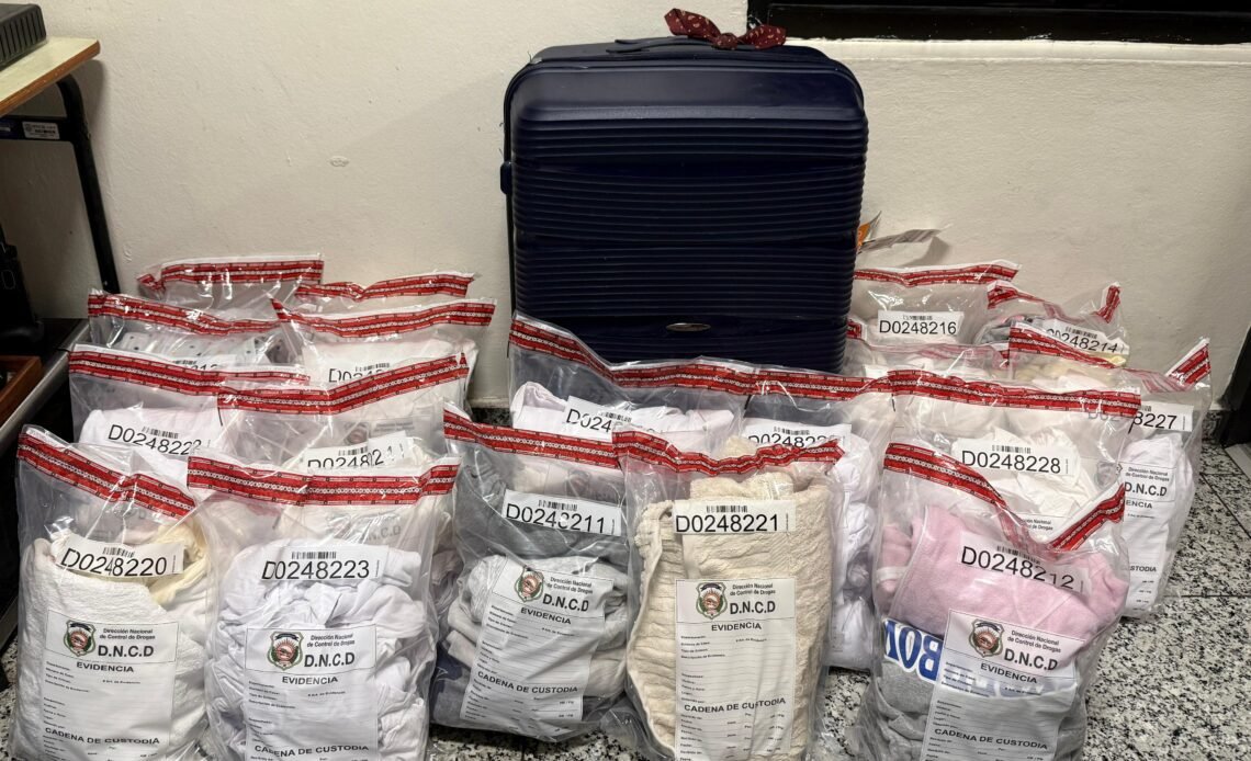 La intervención fue realizada por agentes de la Dirección Nacional de Control de Drogas (DNCD), en coordinación con miembros del Ministerio Público, el Cuerpo Especializado de Seguridad Aeroportuaria y de la Aviación Civil (CESAC) y personal de la Dirección General de Aduanas (DGA).