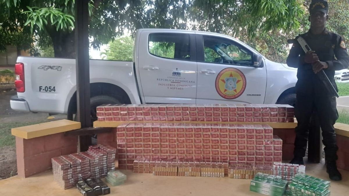 Las autoridades informaron que la intervención principal tuvo lugar en el Mercado Hospedaje Yaque, donde fueron incautadas decenas de cajas con cigarrillos introducidos al país de manera ilegal.