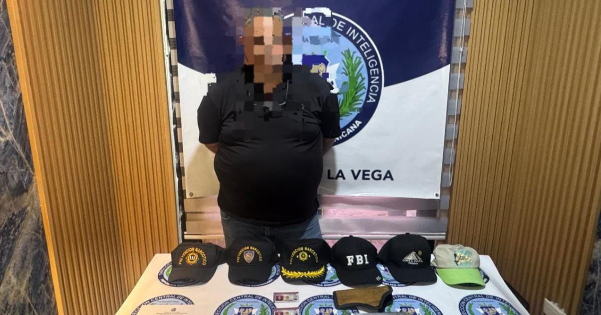 Durante la inspección del vehículo en el que se desplazaba, los oficiales ocuparon una placa que no correspondía al automóvil, además de gorras, carnets y documentos con distintivos de diferentes entidades nacionales e internacionales. Estos materiales fueron retenidos para fines de investigación y análisis, con el objetivo de establecer su origen y determinar si estaban siendo utilizados de forma indebida.
