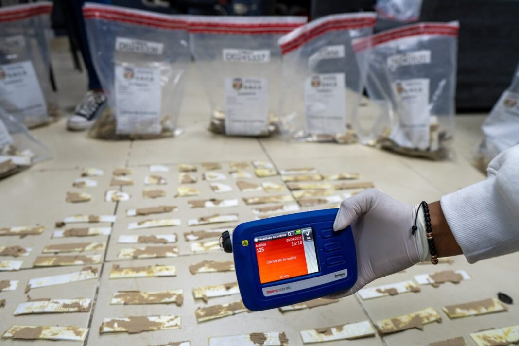 Durante el proceso de verificación, las autoridades revisaron un total de 62 cajas sin ensamblar, detectando en 58 de ellas compartimientos ocultos o doble fondo. En el interior fueron halladas las láminas de la sustancia, empacadas en fundas plásticas transparentes, con un peso individual que supera los tres kilogramos.