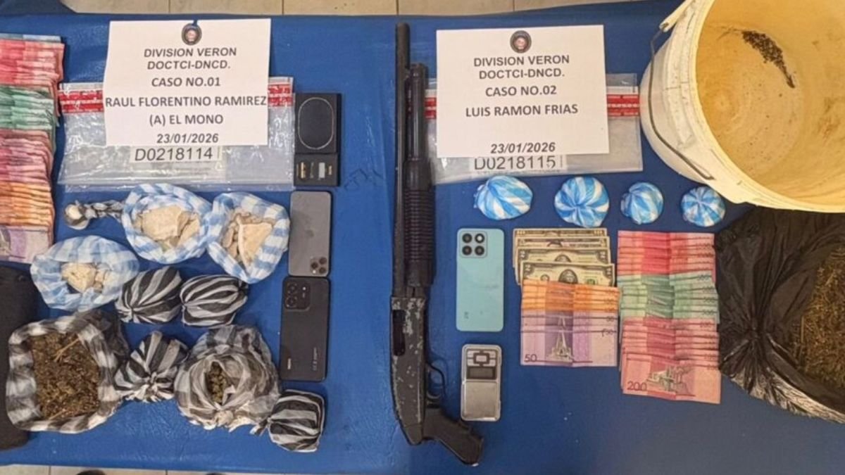Durante los operativos también fueron incautadas dos balanzas, tres teléfonos celulares, una escopeta calibre 12 con la numeración limada, varios cartuchos, RD$24,450 en efectivo, US$19 dólares, una cubeta y otras evidencias vinculadas a la investigación.