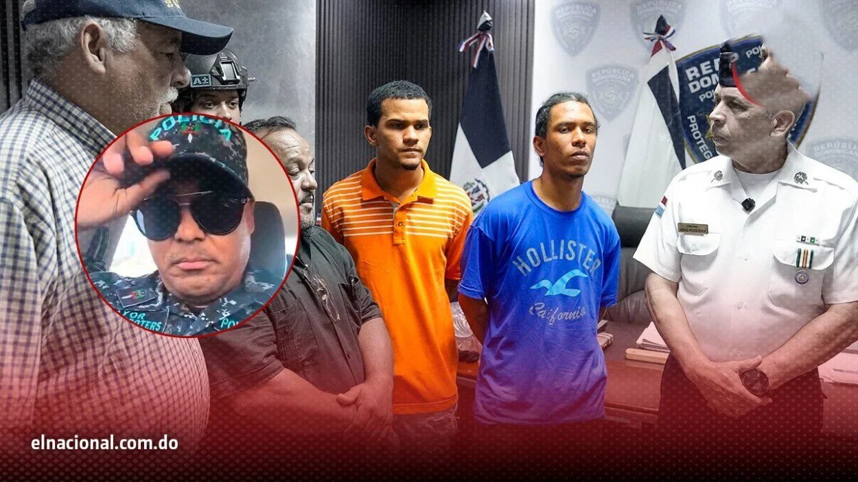 Santo Domingo, RD.— Dos hombres señalados como presuntos integrantes de una estructura delictiva vinculada a la muerte a tiros de un mayor de la Policía Nacional en el sector Villa Juana se entregaron este lunes ante las autoridades en la sede del Palacio de la institución.