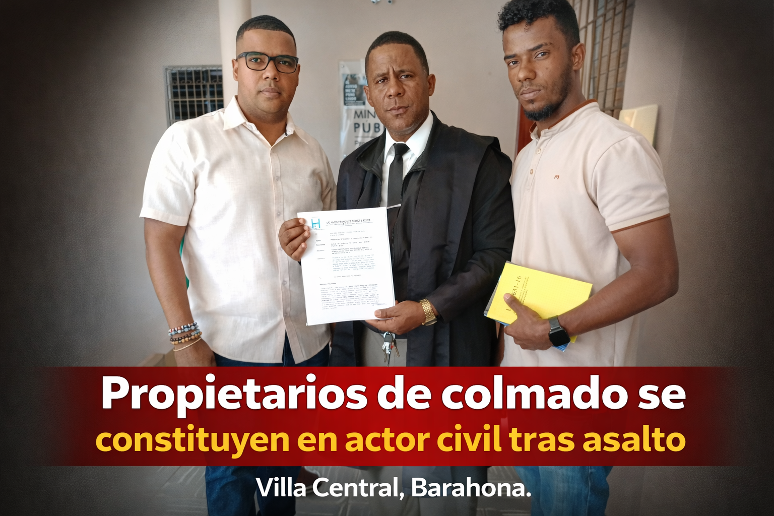 Villa Central, Barahona.– Los propietarios del establecimiento comercial Colmado Hnos. Díaz informaron que se han constituido formalmente en actor civil dentro del proceso judicial relacionado con el asalto del que fueron víctimas recientemente en ese municipio.
