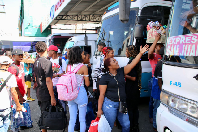 El flujo constante de pasajeros se ha concentrado en puntos estratégicos de salida de la capital. En el kilómetro 9 de la Autopista Duarte, los autobuses con destino al Cibao, especialmente hacia Santiago, La Vega y Puerto Plata, han salido a plena capacidad, transportando a familias que optan por compartir estos días en la región norte.