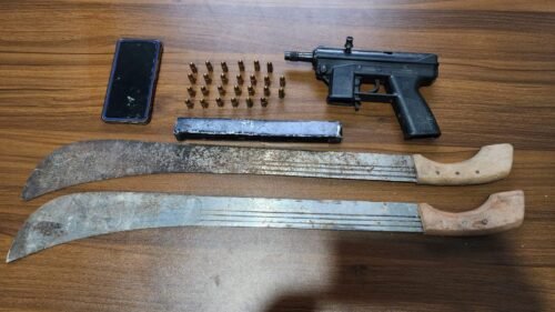 En el sector El Puente fue arrestado Sucre Antonio Novas, mediante orden judicial, a quien se le ocupó un arma de fuego tipo Mini Uzi calibre 9 milímetros, con numeración ilegible y cargador con 26 cápsulas, además de una motocicleta Suzuki AX100 reportada como sustraída, y dos armas corto-punzantes.