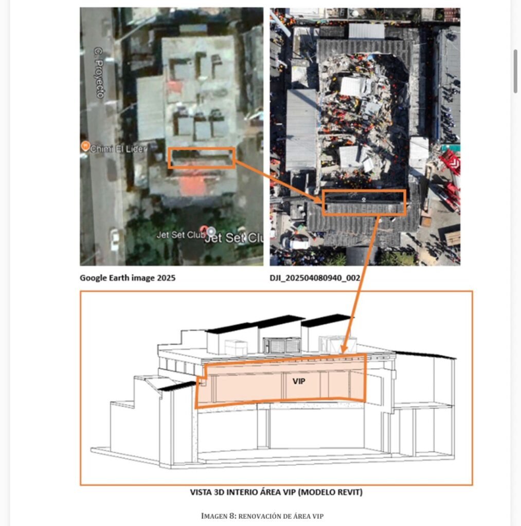 Santo Domingo.– El colapso del techo del reconocido centro nocturno Jet Set Club, ocurrido la madrugada del 8 de abril de 2025, no fue un hecho fortuito, según establece el informe técnico final entregado a la Procuraduría General de la República, el cual atribuye el desplome a una carga excesiva acumulada durante años sobre la estructura.