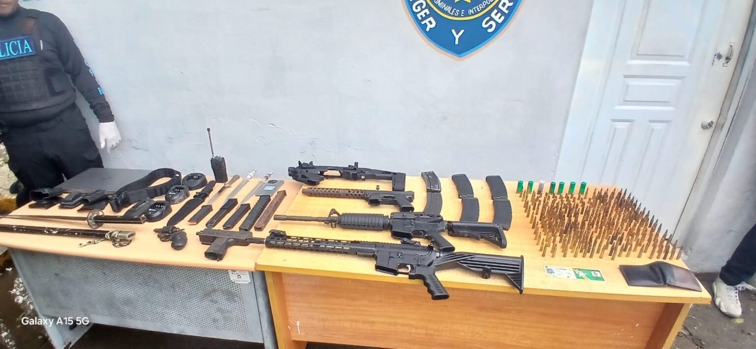 De acuerdo con el informe preliminar ofrecido por la Policía Nacional en esta provincia, en el lugar fueron ocupados dos fusiles, dos ametralladoras tipo Uzi, un revólver calibre .38, varios cargadores para distintos tipos de armas, cuatro cargadores para fusil, una computadora portátil, un radio de comunicación y un arma blanca tipo katana, además de otros objetos punzocortantes.