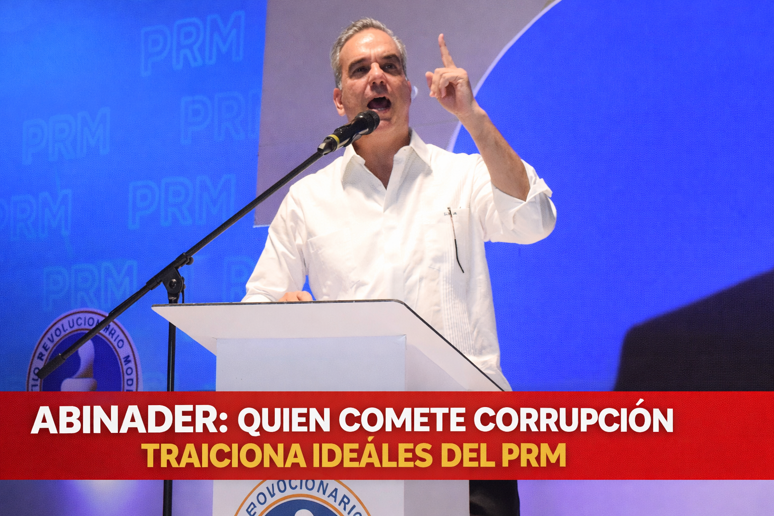 Santiago.— El presidente de la República, Luis Abinader, afirmó que su gestión trabaja para consolidar un Estado más eficiente y transparente, y advirtió que cualquier dirigente o funcionario que incurra en actos de corrupción se aparta de los principios que dieron origen al Partido Revolucionario Moderno (PRM).