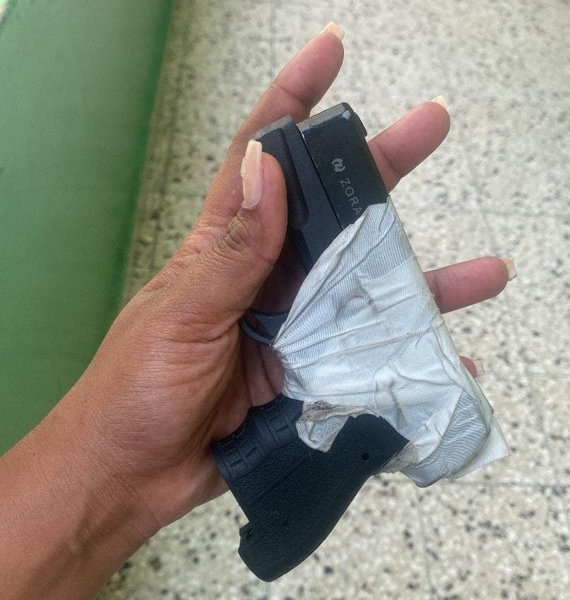 El agente actuó de inmediato y, siguiendo los protocolos establecidos, procedió a revisar la situación, logrando ocupar a uno de los menores —cuyo nombre se mantiene en reserva por disposiciones legales— una pistola de juguete con apariencia similar a un arma de tipo bélico.