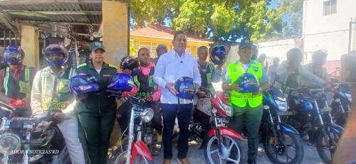 - Senador Moisés Ayala entrega en compañia de la DIGESETT cascos protectores a motoconchistas en Barahona