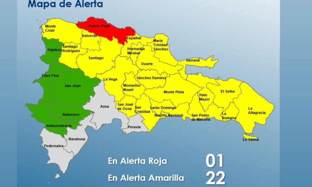 Santo Domingo, R.D.– El Centro de Operaciones de Emergencias informó que mantiene una provincia en alerta roja, 21 provincias y el Distrito Nacional en alerta amarilla,...