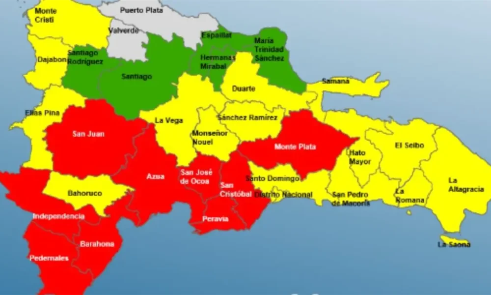 Santo Domingo.– El Centro de Operaciones de Emergencias (COE) informó este domingo que mantiene 9 provincias en alerta roja, 16 en amarilla y 5 en verde,...