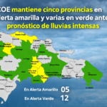 - COE mantiene cinco provincias en alerta amarilla y varias en verde ante pronóstico de lluvias intensas