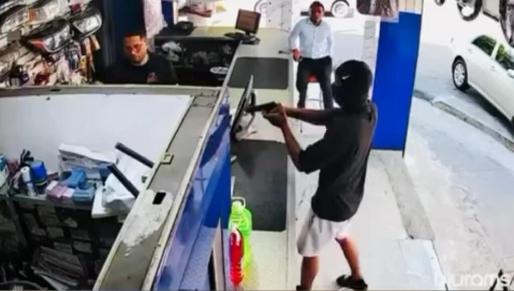 El hecho, que quedó captado en video y posteriormente se viralizó en redes sociales, se produjo mientras varias personas se encontraban dentro del establecimiento comercial. En las imágenes difundidas se observa a uno de los individuos con el rostro cubierto y portando un arma de fuego, exigiendo a los presentes que levantaran las manos y obedecieran instrucciones.