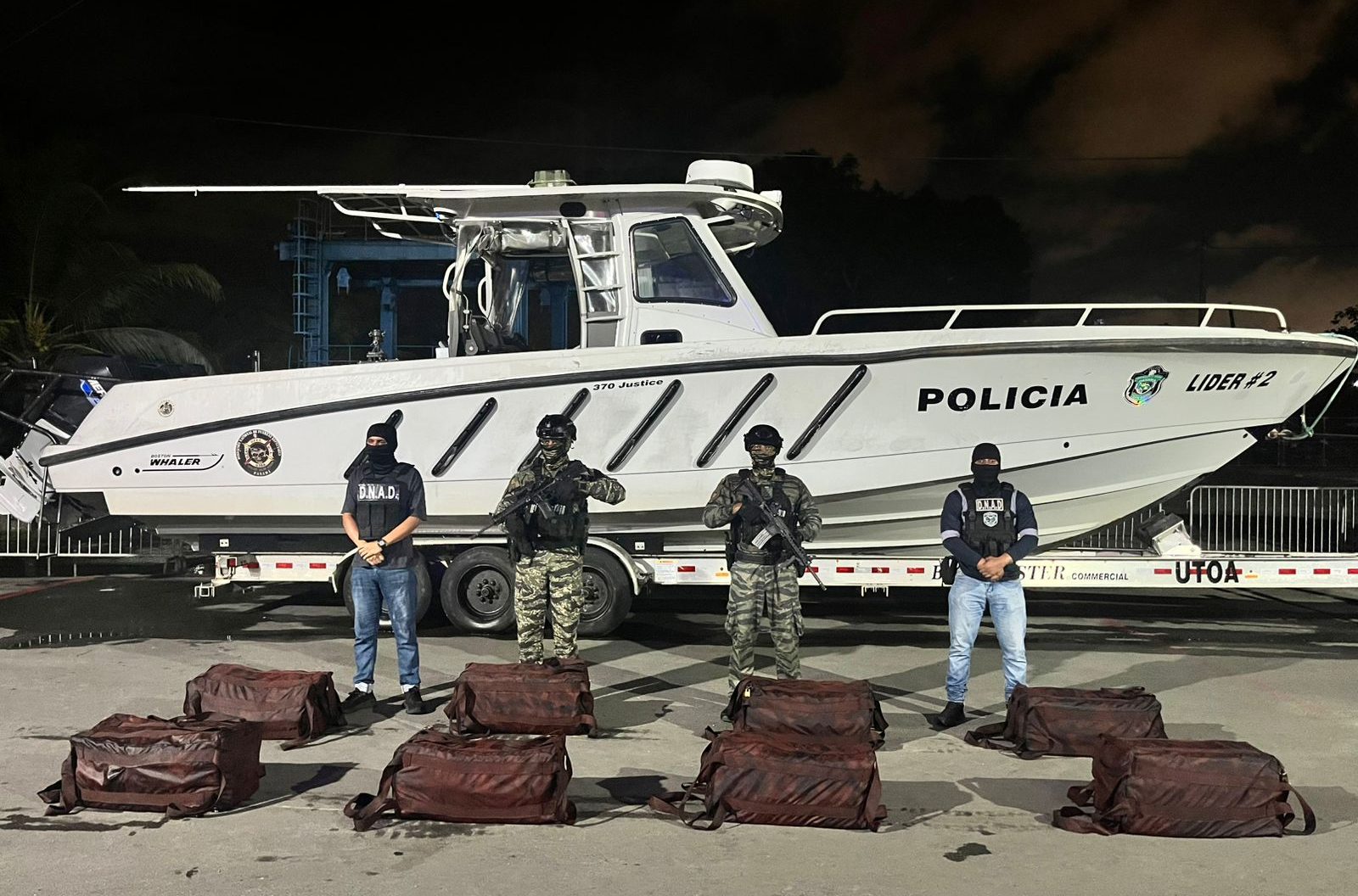 Durante el operativo, ejecutado por la Fiscalía de Drogas de Coclé y Veraguas junto a unidades del Servicio Nacional Aeronaval, fueron aprehendidas dos personas que se encontraban a bordo de la lancha.